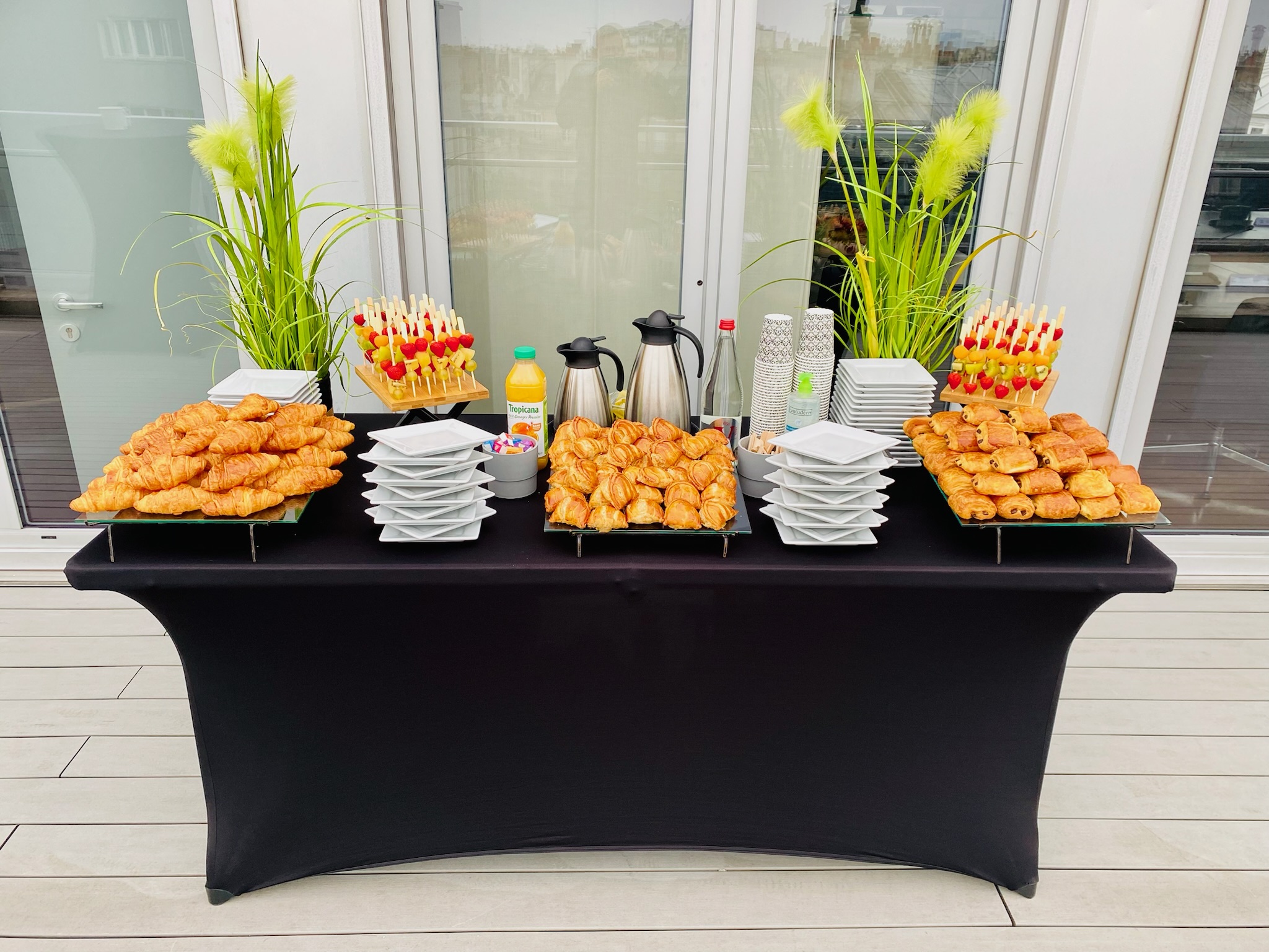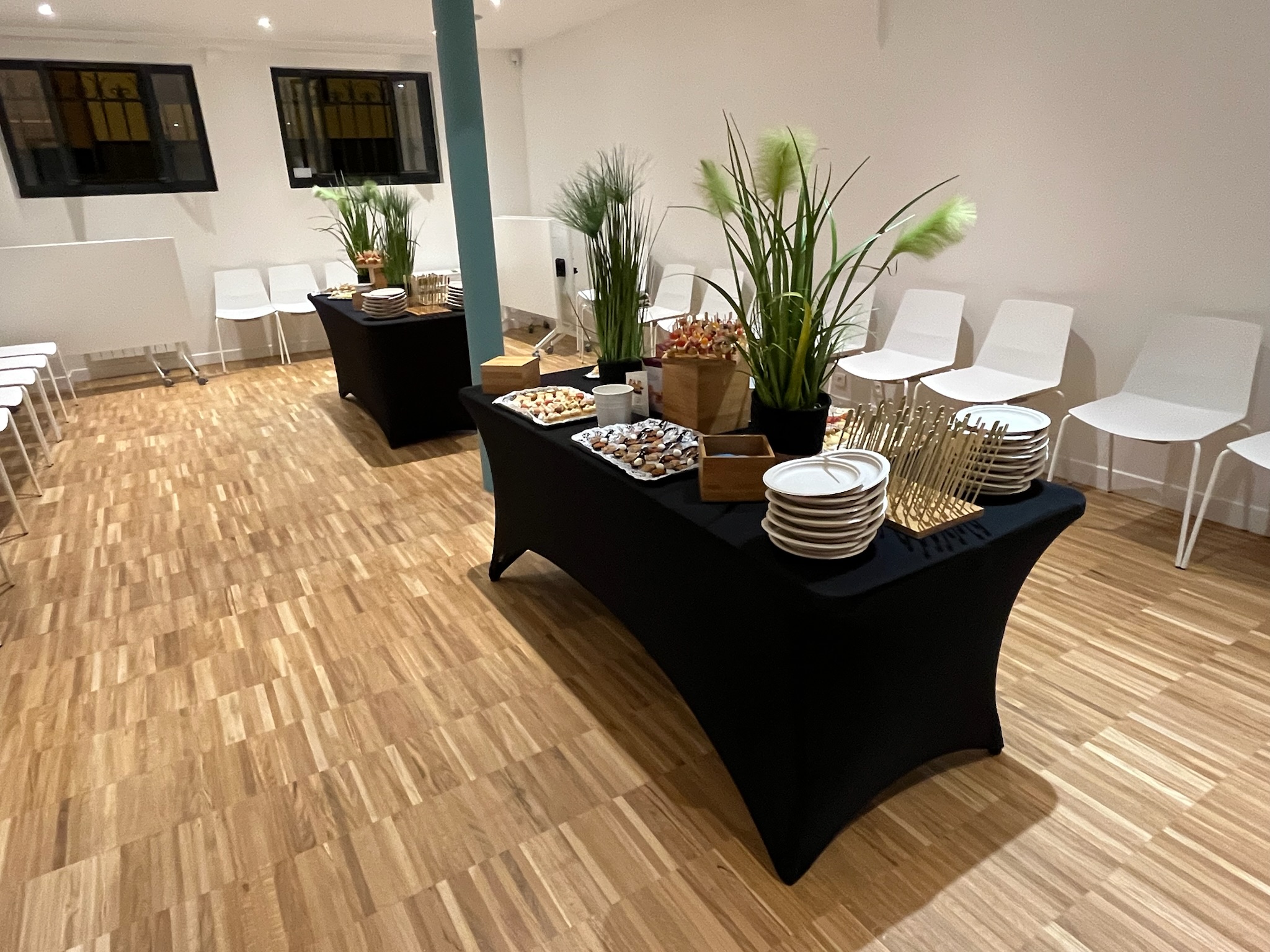 Nous mettons à votre disposition tout le matériel nécessaire — verres, nappes, décorations, serveurs, étuves, etc. — pour que vous puissiez vivre votre moment en toute sérénité.